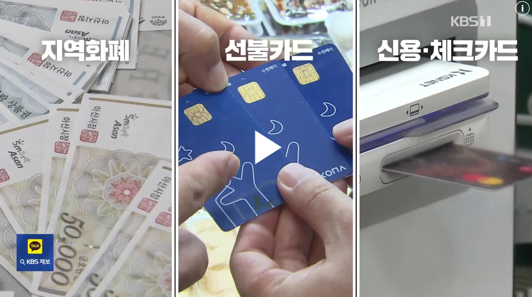 쿠폰 형태는 세 가지입니다. 지역사랑상품권(지역별 지역화폐), 주민센터 등에서 발급받을 수 있는 선불카드, 평소 쓰던 신용이나 체크카드, 이 중 하나를 택하면 됩니다.