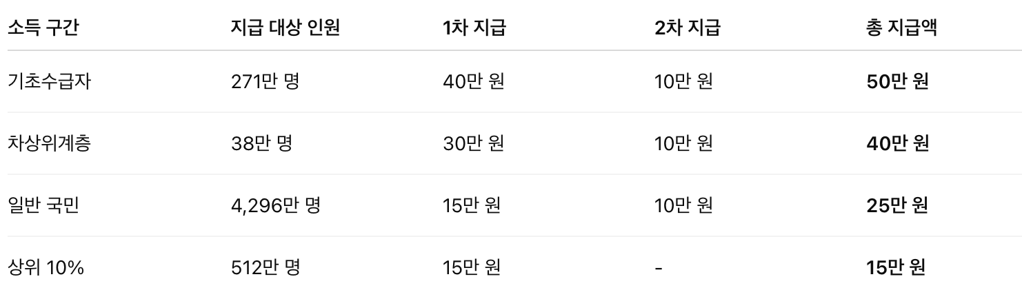 - 시행 시기 : 2025년 여름부터 연말까지 단계적 지급