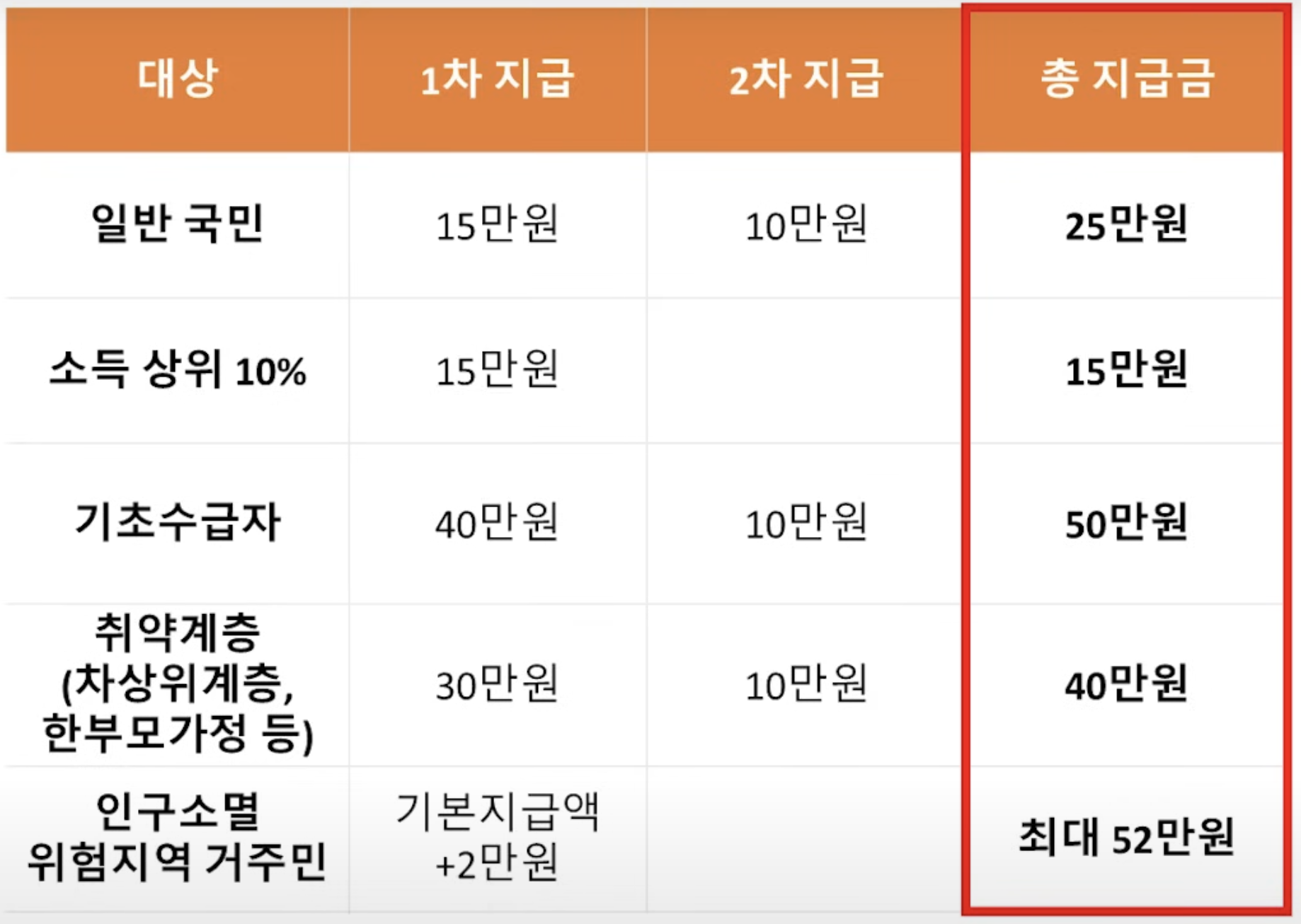 단, 소득 수준에 따라 총 지급액에 차이가 있는데요. 구체적인 지급안은 아래와 같습니다.