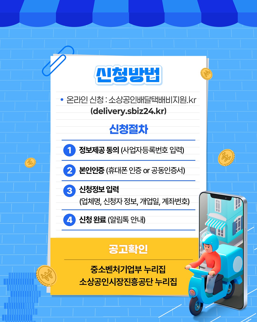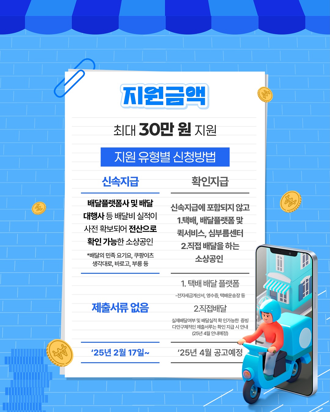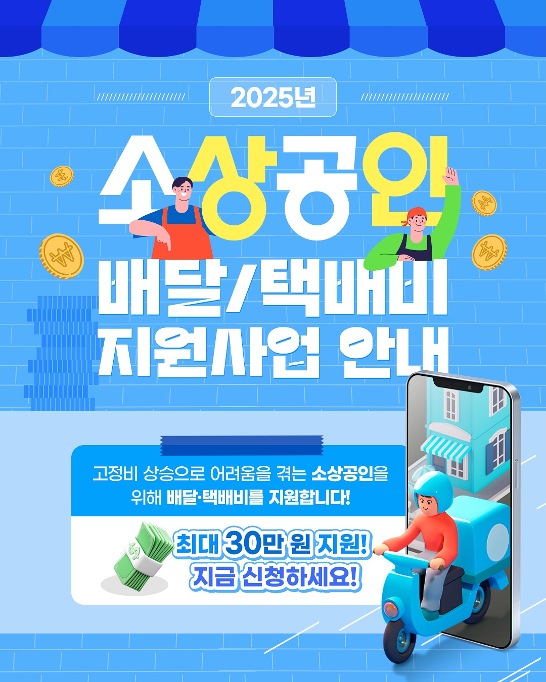 소상공인의 고정비 부담을 덜어주는 배달·택배비 지원 사업이 2025년에도 이어집니다. 배달앱을 이용하든, 직접 배달을 하든, 택배를 보냈든 상관없어요. 조건만 맞는다면 최대 30만원 현금 지원! 지금 바로 확인해 보세요.