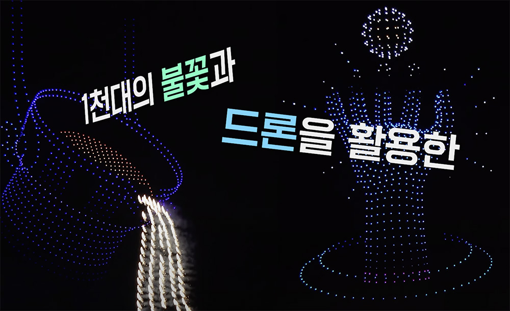 - 내용 : 1,000대 이상의 드론이 정교하고 아름다운 비행을 선보이며, "[당신의 하루에 감사합니다]"라는 감동 메시지를 밤하늘에 그립니다.