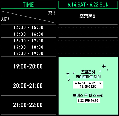 자세한 일정은 [포항문화재단 홈페이지]를 참고하세요.